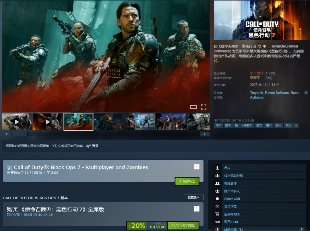 《使命召唤:黑色行动7》现已登陆Steam、战网、PlayStation和Xbox平台。本次推出的限时免费试玩与促销活动,给还在犹豫的玩家们创造了体验这款年度FPS大作的契机,可千万别错过啦!