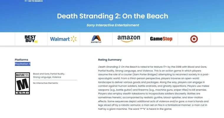 近期,《死亡搁浅2:冥滩之上》一次看似无关紧要的更新让玩家们心生忧虑。该游戏在美国评级机构ESRB的网站页面出现变动,所有涉及PC版本的相关说明均已被移除。