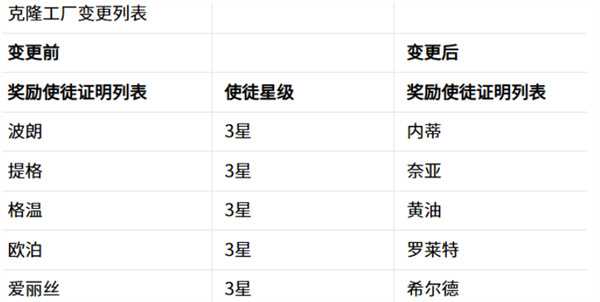 在本轮更新里,之前一直常驻的格温、提格、波朗等角色已被移出三星池,新的一批三星使徒也正式登场了。