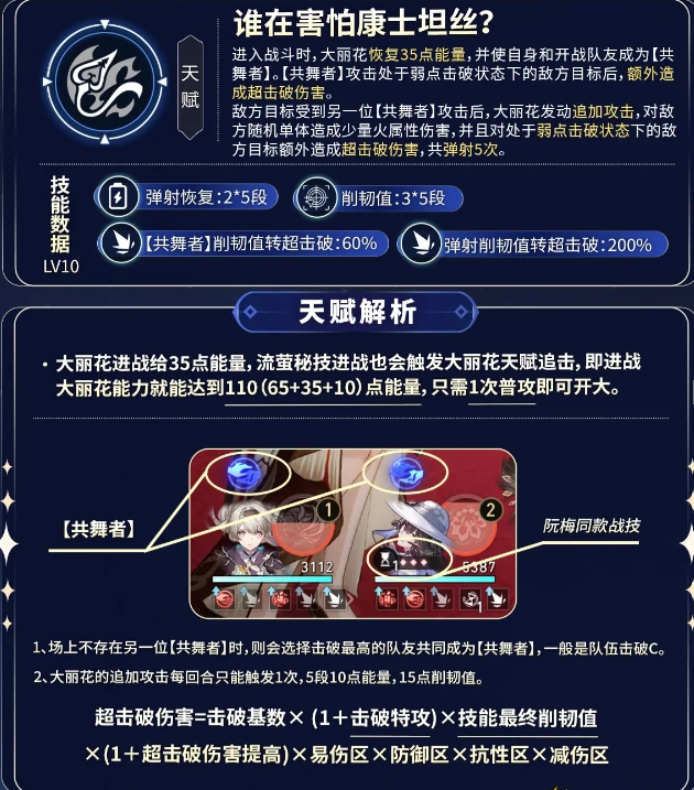 ② 击破加成提高自身击破输出外,主要还是提高行迹【又一场葬礼】给队友的击破加成,从而提高击破队伍的输出能力。