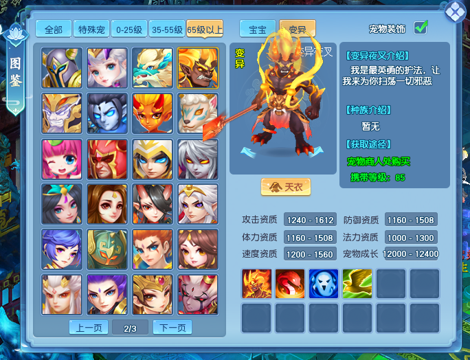 作为物理系的标杆宠物,夜叉的攻击与体力资质均为1612,速度资质更是飙到了1599,凭借这手速能在战场上抢占先机。它的防御资质1508虽略逊一筹,但看它那一身贲张的腱子肉,这样的设定反而显得很贴合。