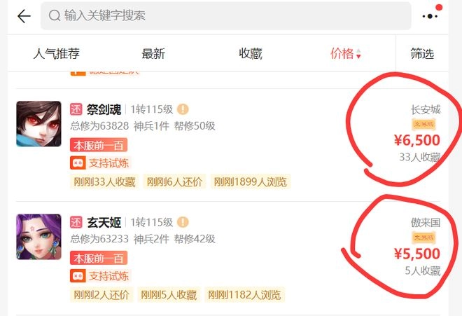 如果想打架,追求战力排名的,也可以考虑5K~6K的成品号,我建议买号要慎重,可以多收藏几个号对比一下,然后找号主讨价还价,争取最优惠的价格拿下。