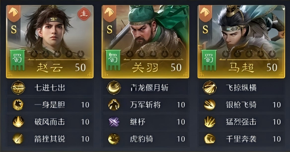 4、注意事项:关羽定位为纯辅助,马超与赵云负责输出,这套阵容的获取难度较低,在PVP中处于T1守门员梯队;该队伍也可转型为枪兵阵容,转型时需将虎豹骑替换为全军突击。