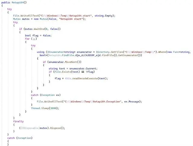 为达成长期潜伏的目的,此恶意软件还借助内部Web Shell与“战略性部署”的恶意进程构建持久性,其最终目标已被认定是开展长期的网络间谍活动。