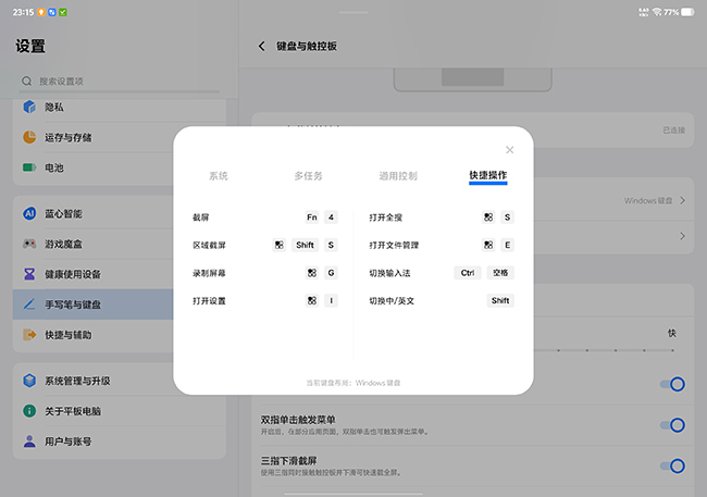 iQOO智能触控键盘集成触控板,支持多点触控手势,比如双指滚动、三指切换应用等,用习惯后可以完全脱离平板屏幕操作,像在笔记本上一样顺手。
