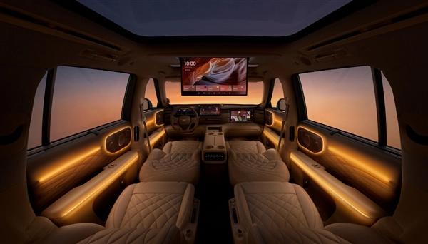 尽管官方图片未直接展示,但这款车无疑会配备AR-HUD抬头显示功能,并且第二排车顶将设有大尺寸娱乐屏,扶手箱下方很可能搭载压缩机冷暖箱。