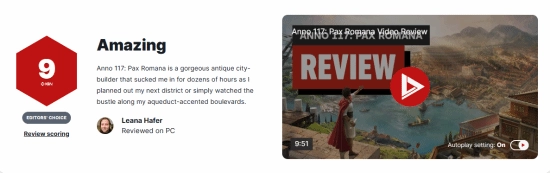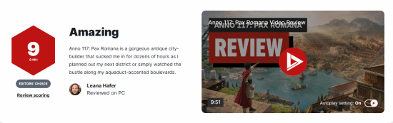 IGN针对育碧推出的策略模拟新作《纪元117:罗马和平》发布了评测,给出了9分的高分评价。评测中提到,这款游戏是一部精美的古典城市建造作品,无论是规划新区域的建设,还是注视着高架水渠边林荫大道上往来不绝的人群,都让评测编辑沉浸其中长达十几个小时。