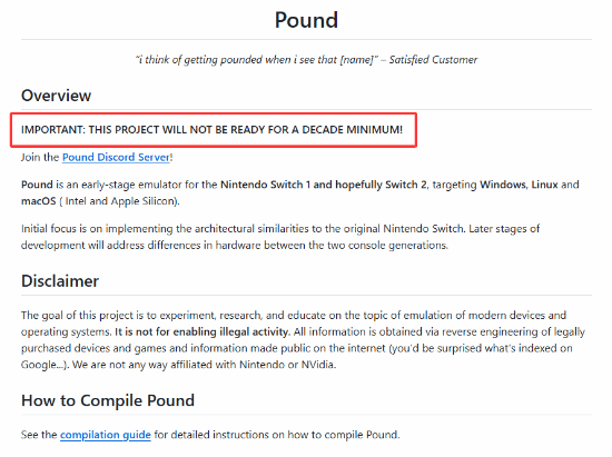 Oboromi被描述为“研发中项目”,Pound则是“早期模拟器”,并且最近还增添了一行全大写的“重要标语”: