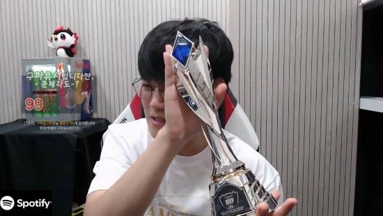 在直播里,Gumayusi 兴奋地抱起 FMVP 奖杯,还表达了自己对这座奖杯设计的喜爱。