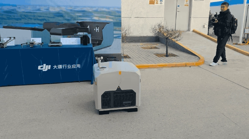 指令下发后,大疆机场3的舱门自动开启,Matrice 4TD无人机在通过激光雷达完成自我状态检测与环境感知,确认沙尘浓度、风速等参数符合飞行条件后,自主起飞。