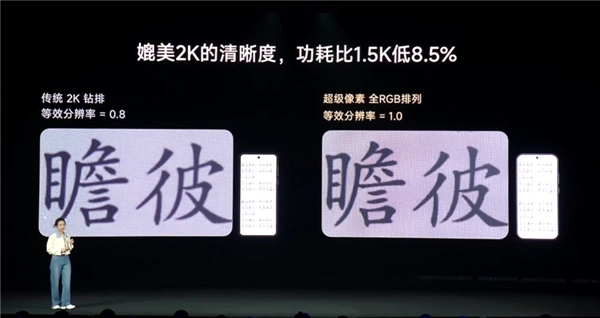 既保证了可与传统2K屏相媲美的总子像素数量及超清晰显示效果,又让功耗比传统方案减少26%,达成了显示精度与能效表现的双重突破。