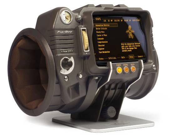 Pip-Boy(哔哔小子)是《辐射》系列游戏里极具标志性的便携式终端设备,它的主要功能是展示玩家状态、地图、库存等各类信息。