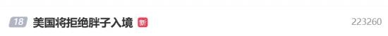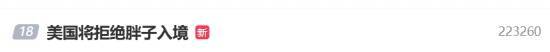 11月15日,“美国将拒绝胖子入境”这一相关话题登上了微博热搜榜。根据环球时报的报道,美国国务卿鲁比奥已经指示美国签证官,把肥胖以及各种慢性疾病纳入拒绝外国人申请美国签证的理由之中。
