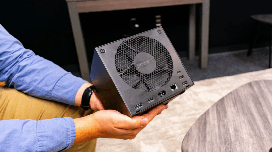 接口的配置情况为:机身正面配备两个USB-A接口与一个MicroSD卡槽,机身背面则设有DisplayPort、HDMI、两个USB-A、一个USB-C以及电源接口。颇为难得的是,这款设备在小巧紧凑的机身里成功集成了内置电源模块,使用时不必额外连接体积较大的电源适配器。