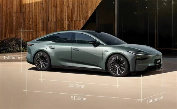 这款车定位为中大型轿车,车身长宽高尺寸分别达到5130毫米、1965毫米和1506毫米,轴距则为3020毫米,宽敞的空间无疑会是其核心优势之一。