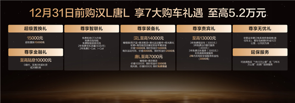 汉L DM标配第五代DM技术,共3款车型,补贴后售价19.48万~24.48万元。