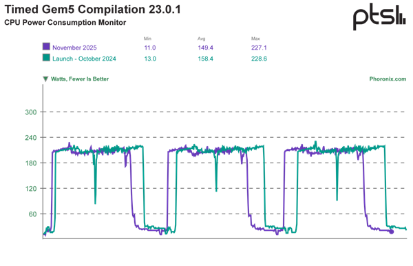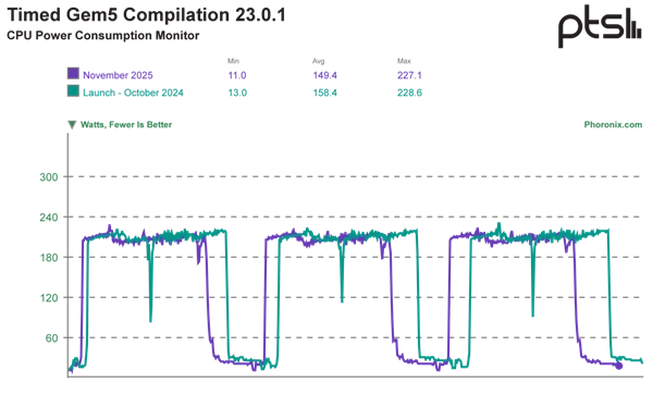 同样值得关注的是,在性能提升的同时,这款处理器的功耗仅为去年10月的85%,下降幅度达到15%。这说明英特尔借助软件优化,不仅降低了处理器的功耗和发热量,还进一步发掘了Arrow Lake-S芯片的性能潜力。