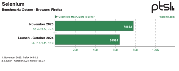 此次Linux测试涵盖代码编译、压缩、网页性能、高性能计算、模拟等多种负载场景,所有场景均未出现性能倒退情况,整体表现稳定且一致。