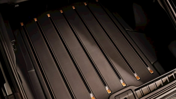 方向盘、仪表盘与中控台处都饰有Sonderwunsch专属标识及定制缝线,车顶和门板运用了特殊的菱形绗缝工艺,再配上64色可调氛围灯,灯光能跟随音乐节奏变化。