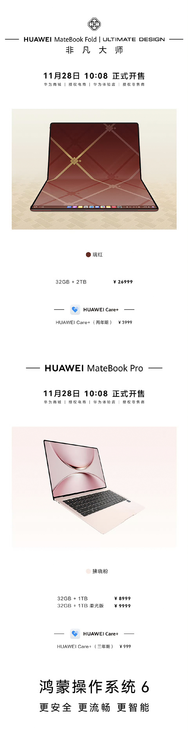 11月28日,华为MateBook Fold非凡大师瑞红、华为MateBook Pro拂晓粉这两款全新配色的鸿蒙电脑正式开启销售。它们不仅丰富了消费者对电脑外观配色的个性化选择,而且这两款产品均可升级至HarmonyOS 6系统,在鸿蒙AI功能与智慧互联性能方面得到进一步提升,助力用户全面释放生产力。