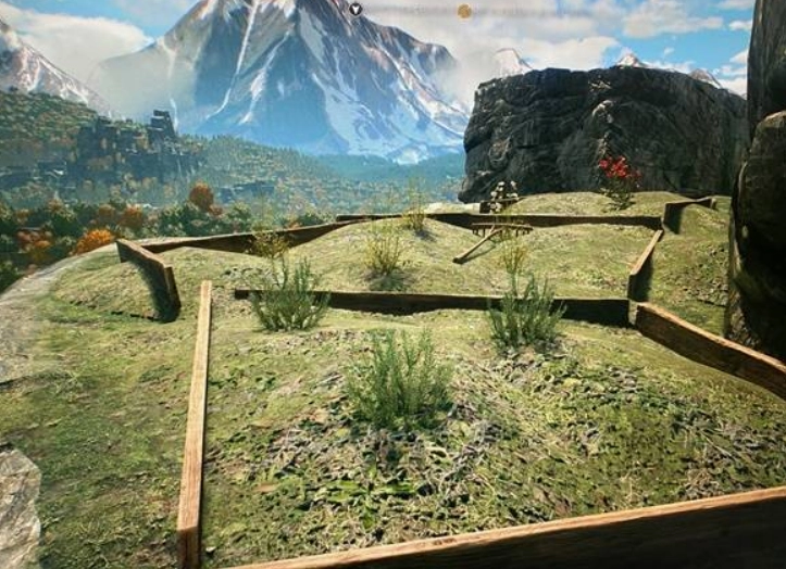 在石中剑的周边,有3株薰衣草、5朵洋甘菊和2支ys花,头顶上方还生长着虫草。