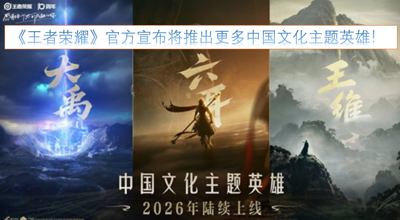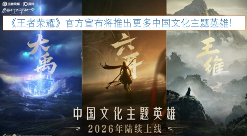 在10月26日的《王者荣耀》十周年共创之夜活动上,官方正式公布了六耳猕猴、大禹和王维这三位以中国文化为主题的全新英雄,同时还透露自2026年开始,会持续推出更多同类型的英雄角色。下面是小编为各位玩家整理的详细信息,感兴趣的小伙伴不妨一起来了解一下!