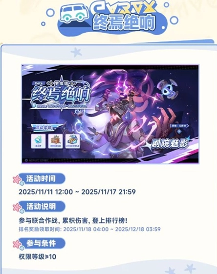 活动说明:参与联合作战,累积伤害,登上排行榜!排名奖励领取时间:2025/11/18 04:00——2025/12/18 03:59