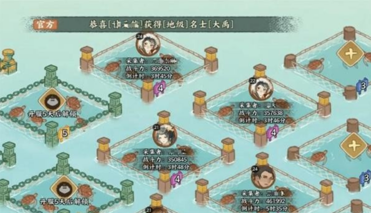 4、玩家可以安排队伍去执行采集任务,也能通过抢夺的手段攻击其他玩家的采集点,一旦成功就能获取对方已采集龟甲中的一部分。