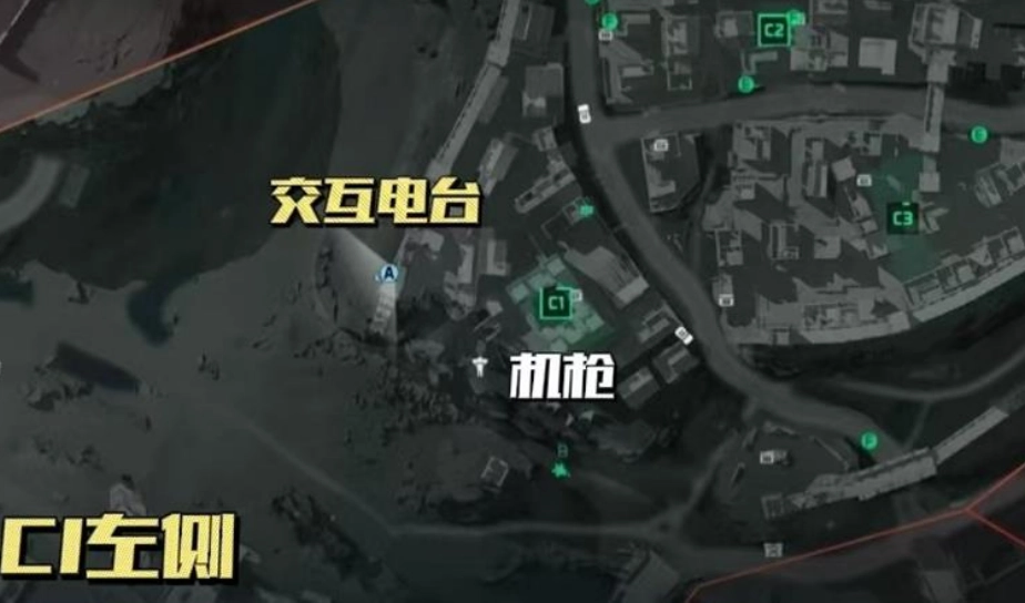 这里是开启三角洲行动全域战场彩蛋任务的关键区域。推荐选择哈夫克阵营担任防守方,优先探查C区域的三个位置。C1左边的电台处于地图边缘,需要暂时离开主战场区域。从C1出发,先找到乱石堆上的机枪位置,接着向左移动到断裂墙壁处,沿着外侧攀爬前进。当系统提示“返回战场”时不用紧张,继续前进直到看到三棵树,在拐角墙壁旁边就能找到电台并进行互动。
