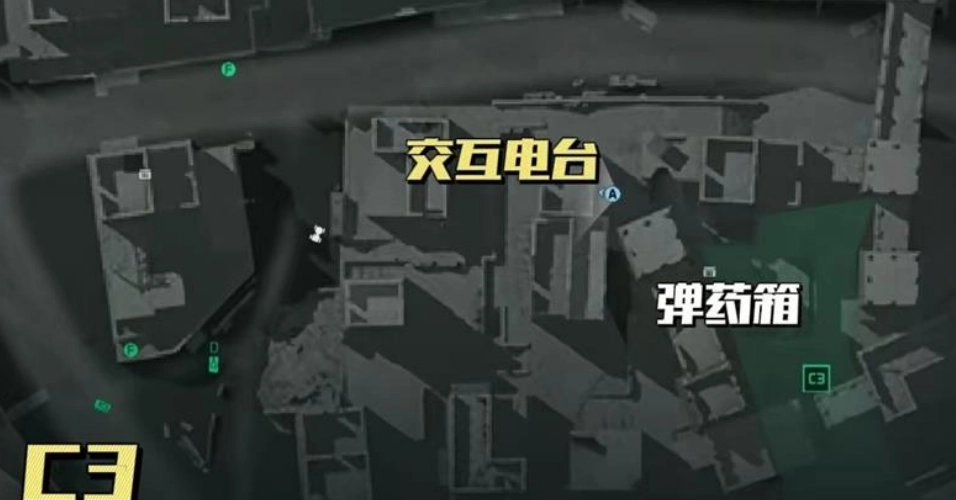 E区域右下角的电台藏在高墙拐角的位置,周边从草地逐渐过渡到荒地,环境光线较暗,很容易被人忽略。建议带上照明工具,或者借助队友的帮助来确认它的具体位置。F区域的电台在靠近小路的一间房间里,房间结构比较简单,进去之后就能在屋内完成相关交互操作。这两个点位虽然不算复杂,但在紧张的对战场景中还是要留意安全,防止被敌方干扰。
