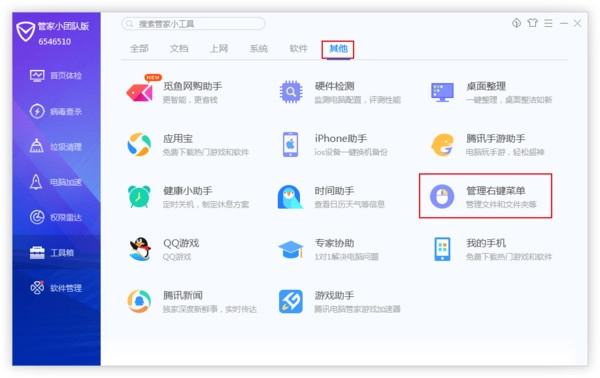 如何用腾讯电脑管家清理右键菜单里多余的选项