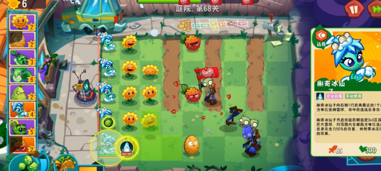 檞寄冰仙子能有效克制多种类型的僵尸。它对火焰舞王这类火焰系单位有优先清除的能力,不仅可以熄灭火焰,还能使其进入冻结状态。针对气球僵尸,它的高抛攻击能够直接将目标击落,不需要依靠仙人掌之类的反空中单位。