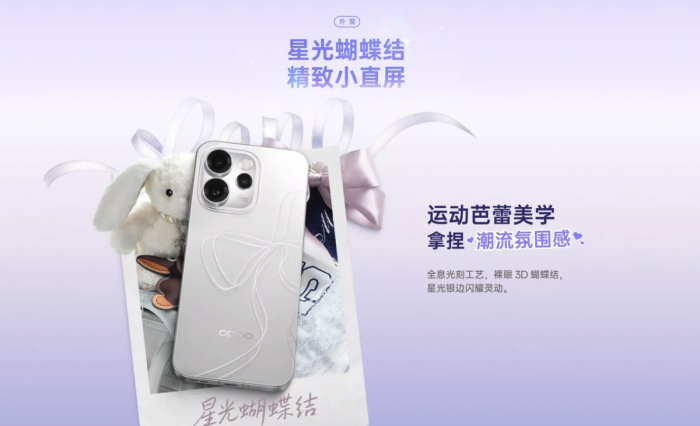 外观设计上,Reno15系列继续秉承OPPO向来的高颜值风格,全新推出的「星光蝴蝶结」配色运用行业首创的全息光刻技术,把漫天星尘汇聚成裸眼3D的蝴蝶结纹路,在光影变幻中拥有极高的辨识度。机身采用金属中框结合冷雕玻璃的设计,让整体握持手感顺滑细腻,质感得到进一步增强。Reno15标准版有星光蝴蝶结、极光蓝和可露丽棕三种颜色可选,Reno15 Pro则配备星光蝴蝶结、蜜糖金与可露丽棕三款配色,整体风格清爽且不失高级感,无论你偏好温柔、酷感还是活力的风格,都能找到适合自己的心仪款式。