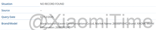 12月5日消息,据XiaomiTime消息,近期一款型号为2608BPX34C的小米新机型被发现录入GSMA数据库,行业内大多猜测这款机型正是小米MIX系列的三折叠手机产品——MIX Trifold。