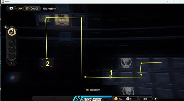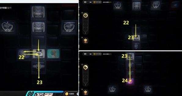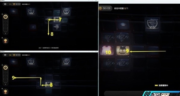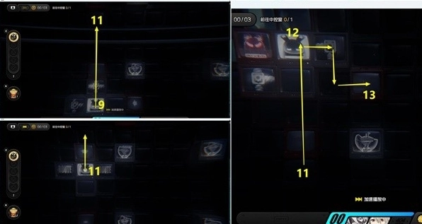 3. 随后从7区域向左移动1格,向下移动2格到达8区域;接着从8区域向左移动1格,向上移动1格,再向左移动3格到达9区域,在9区域按下R键消灭10区域的怪物