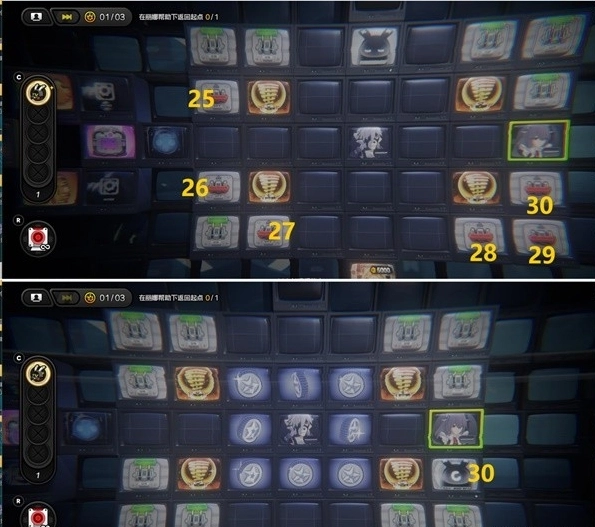 9.接着分别进入25-30区域,即可将里面的红色开关变为绿色,接着将中间区域出现的一圈银币拿了