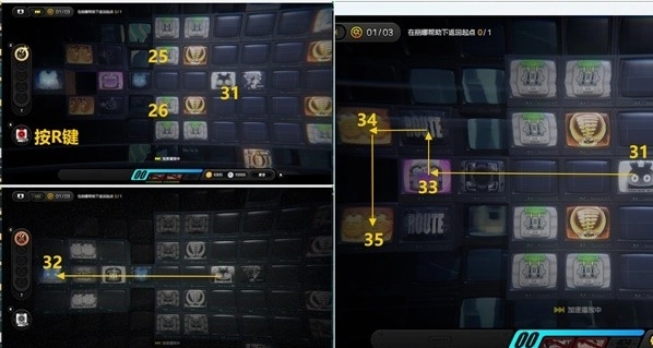 10.接下来前往31区域,先按下R键切换至夜视模式,随后前往32区域;在32区域再次按下R键会回到31区域,之后前往33区域获取宝箱,接着依次前往34区域与35区域。