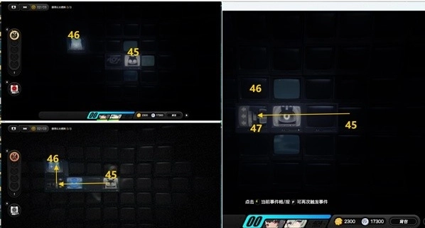 14. 接下来先按下R键,随后从45区域前往46区域;进入46区域后再次按下R键,就能回到45区域;之后前往47区域,就会被弹到左侧的48区域。