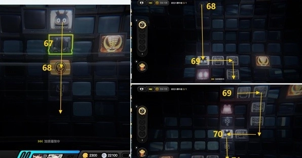 18. 随后前往68区域,再继续向下行进,从69区域右侧的轨道下去到达70区域,接着从71区域左侧的轨道下去抵达72区域