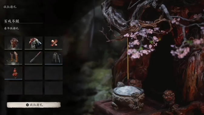如果是豪华版玩家,你可以在篝火处遇到尊贵的百系套装,红葫芦以及一个臻丸,这套装备虽然只是比初始送的衣服多几点防御,但是肯定是比没有强。