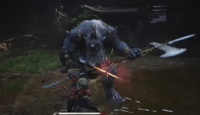 在与游戏中的NPC小怪打斗时,会出现操作提示,比如按住重攻击,也就是重棍可以蓄力攻击,大家可以注意一下右下角蓄力也是我们的主要攻击手段。