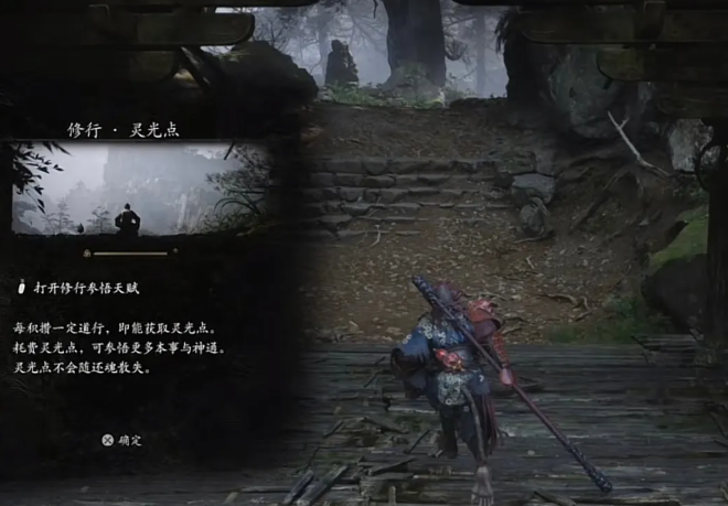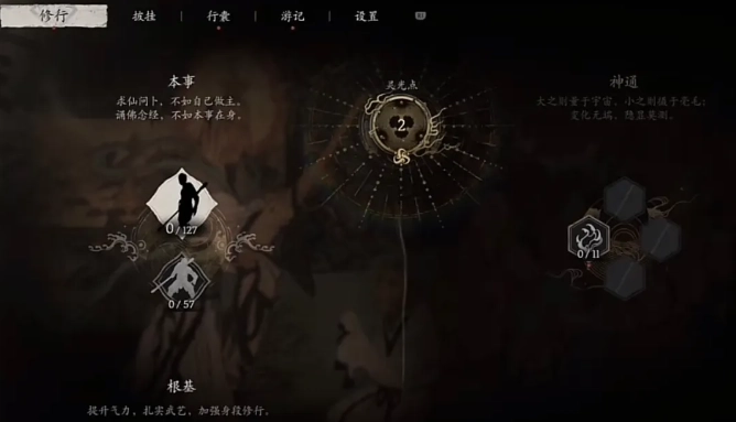 再往前走就相当于点技能了,原本这里有个修行界面,能随意点技能。而且《黑神话:悟空》的游戏技能是可以随时点的,并且点技能完全免费,不花一分钱。