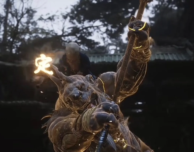 四大天王带着天兵天将来捉拿悟空,杀了些花果山的猴子猴孙,引得悟空大怒。从对白来看,《黑神话:悟空》讲的是孙悟空取经之后的故事。