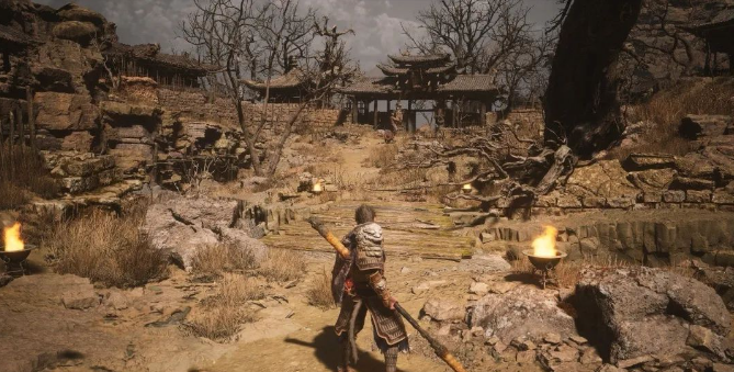 黄风阵的流程是这样的:先到卧虎寺,接着前往定风桥土地庙,再去定风庄土地庙,之后打虎伥获取【旧拨浪鼓】;然后回到定风庄土地庙之前的村子,第一次摇动拨浪鼓;再到不济谷与镇风门之间的桥附近,第二次摇拨浪鼓;接着去沙门村大院子里的井边,第三次摇拨浪鼓;之后下井底打疯虎,再到井底土地庙;最后回到镇风门土地庙打开石门,左边有【打坐蒲团】和葫芦仙人,右边则要打黄风怪。