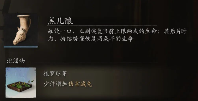 剧情播放过后,沿着水往前走,右边射箭的地方隐身上去到顶石碑前拿到【酒】羔儿酿