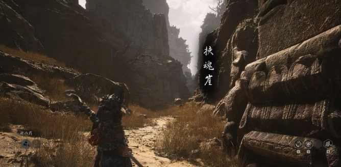 挟魂崖的流程是这样的:先前往藏风山凹的土地庙,接下来需要收集四个【佛目珠】;之后去山沟尽头会遇到石中人,进入洞里击败石母,在石母附近能捡到第五个【佛目珠】;拿到后返回找石中人并击败他,再到土地庙坐一下刷新场景,就能解锁石中人的商店,从商店里可以买到【醒酒石】。然后前往枕石坪土地庙,找到第六个【佛目珠】;用醒酒石叫醒醉酒的猪,在猪附近的树下能拿到【打坐蒲团】;集齐六个佛目珠后唤醒石敢当,石敢当会帮忙干掉石先锋,击败石敢当可获得【受蕴】。接着去碎石台土地庙,沿着街道走到头找到【打坐蒲团】;滑下滑坡来到“黄风阵-镇风门”土地庙,先后击败百目真人和沙大郎,撞墙拿到【飞龙鳞片】,最后前往卧虎寺。