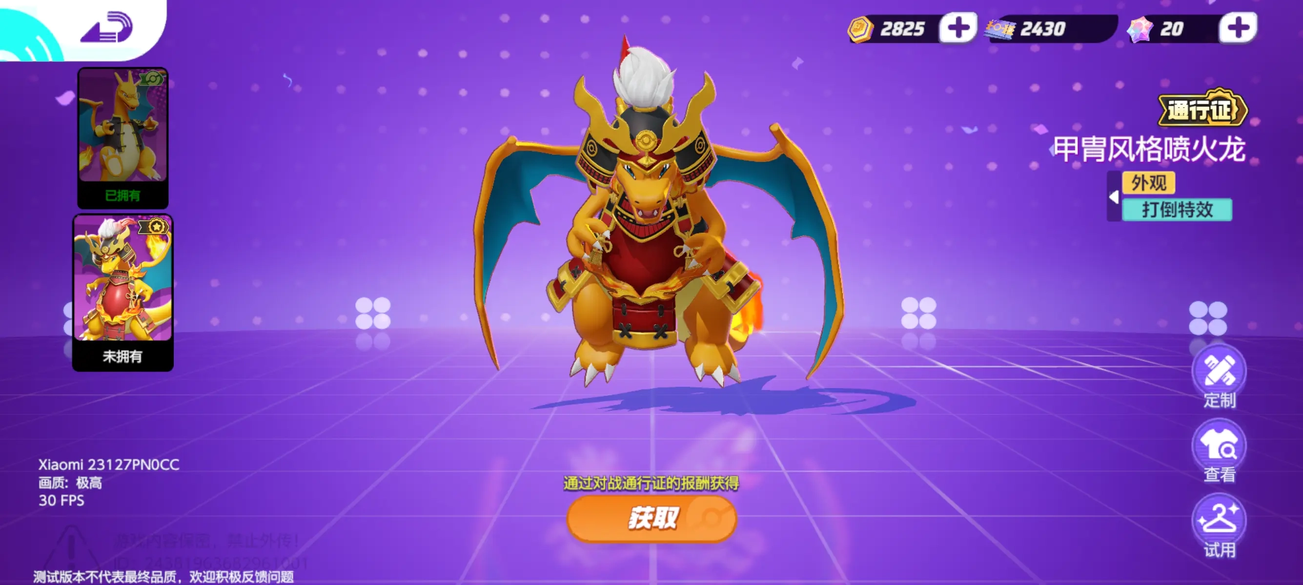 购买通行证:解锁通行证并提升至相应等级,即可领取各类道具奖励,其中包含持有物强化组件。
