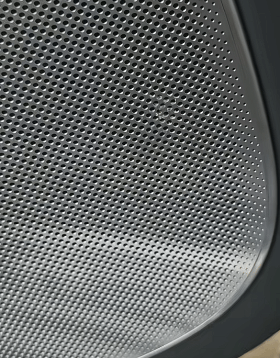 据了解,车规级音响罩在设计时需注重边角的圆滑处理,以此避免意外划伤情况的发生。高端车型大多采用金属网罩,不过这类网罩通常都会经过卷边或者钝化的工艺处理。
