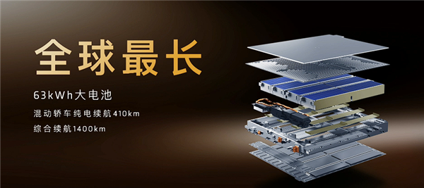 这款车型配备了63kWh的超大容量电池,在CLTC工况下纯电续航可达410km,综合续航里程更是高达1400km。它基于800V高压架构打造,充电效率十分出色——充电10分钟就能增加200公里续航,从20%充至80%仅需12分钟,同时还支持外放电功能,满足多场景用电需求。