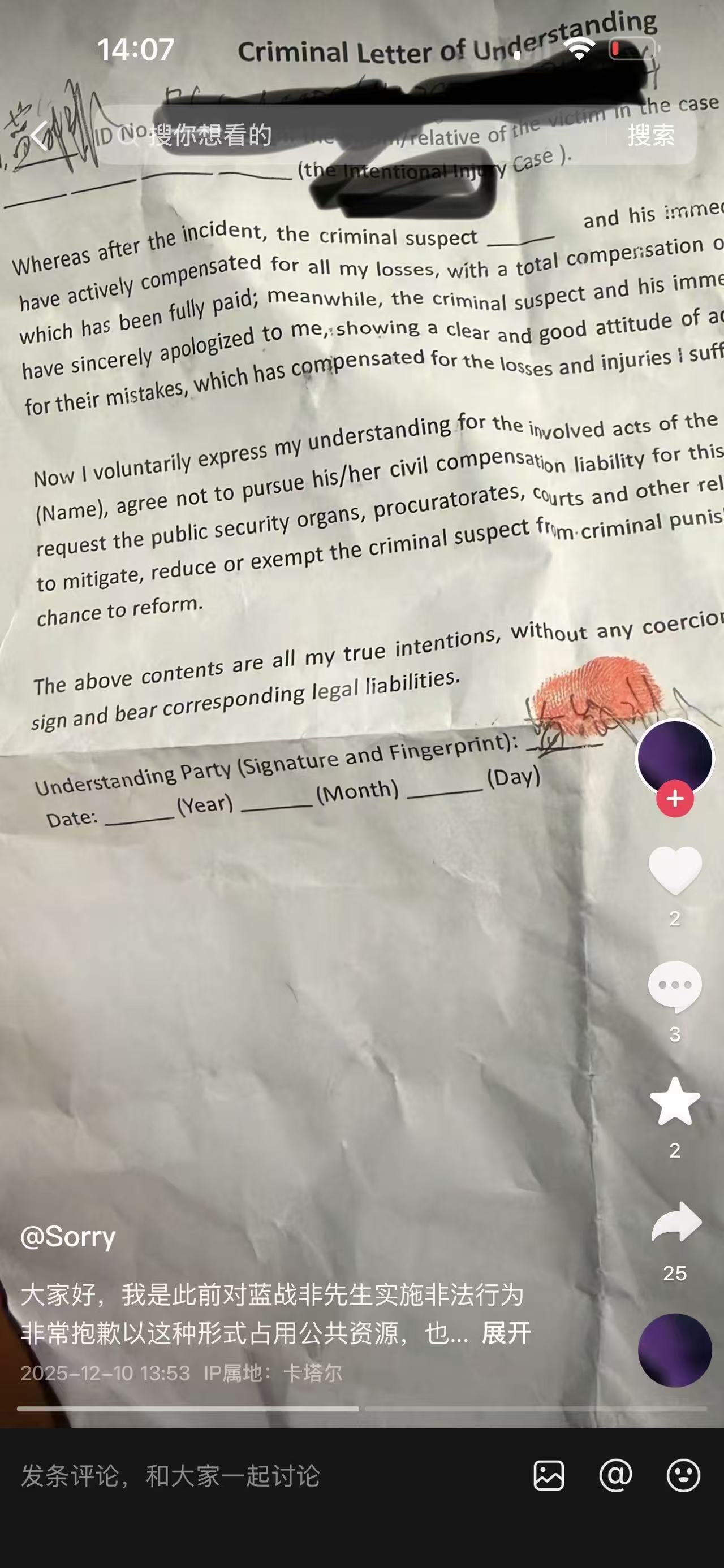 目前最关键的信息是,这名疑似案犯已主动联系中国大使馆,表达了回国投案的意愿,同时也向司法机关坦白了案件经过,唯一的诉求是希望蓝战非能出具一份谅解书。